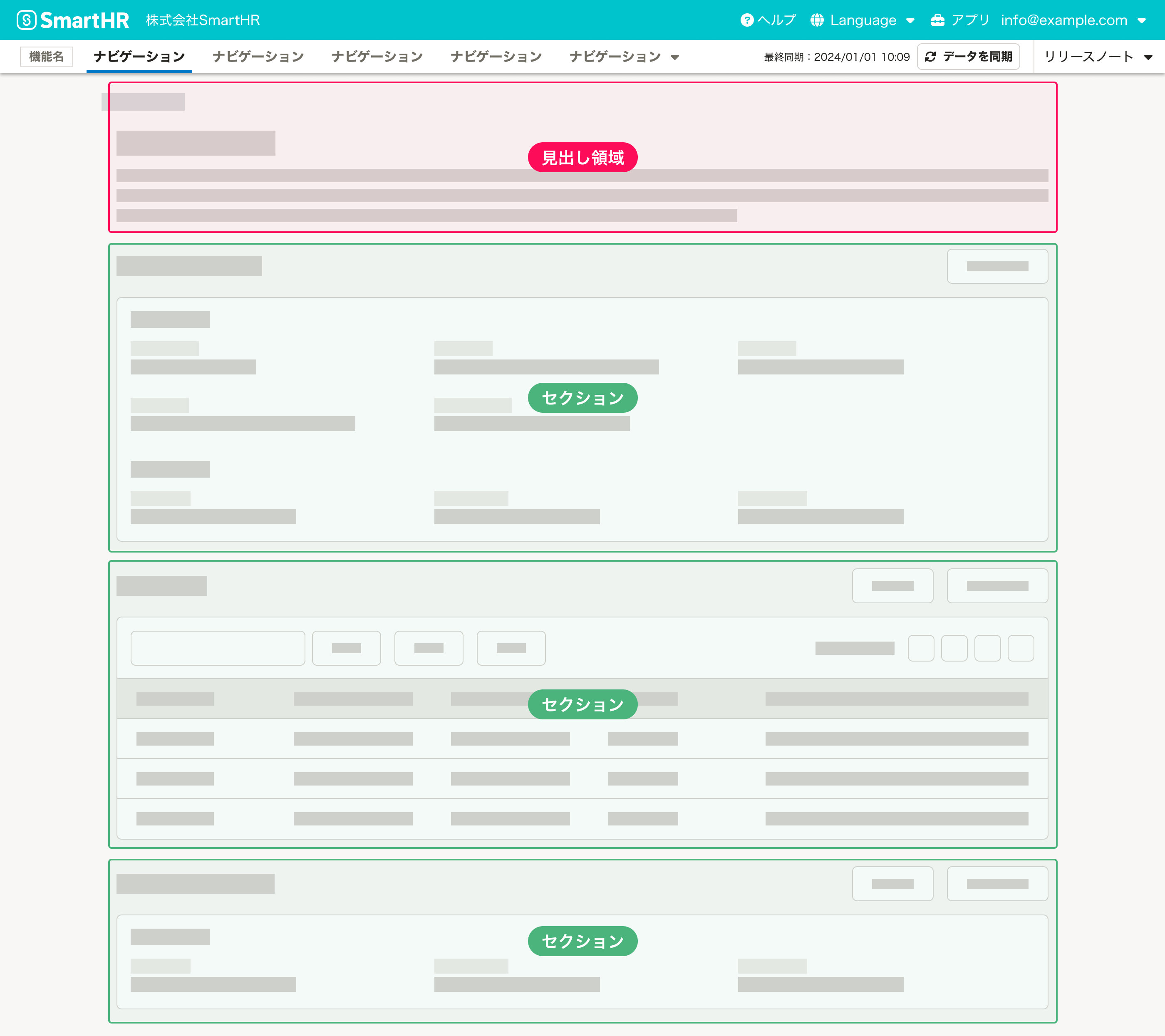 ビューポート内にどのような要素をどのような順序で配置するかをページレイアウトと呼びます。 SmartHRプロダクトの基本的なページレイアウトのパターンをまとめています。